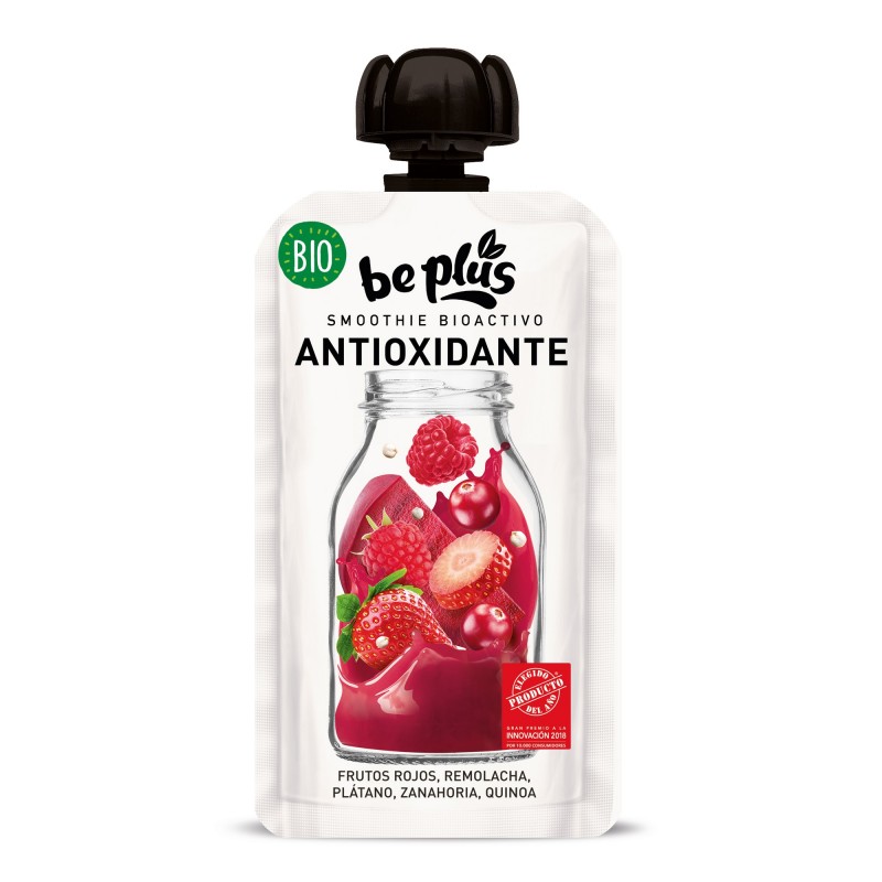 Ingredientes: Purés de frutas (63%) [fresa * y plátano *], puré de zanahoria * (26%), zumos de frutas concentrados (4%) [manzana *, naranja *, limón *, fresa *, cereza *, grosella * y frambuesa *], zumo de remolacha concentrado * (2.5%), sirope de agave *, harina de quinoa * (1.5%), aromas y vitamina C. (*) Ingredientes procedentes de producción ecológica.