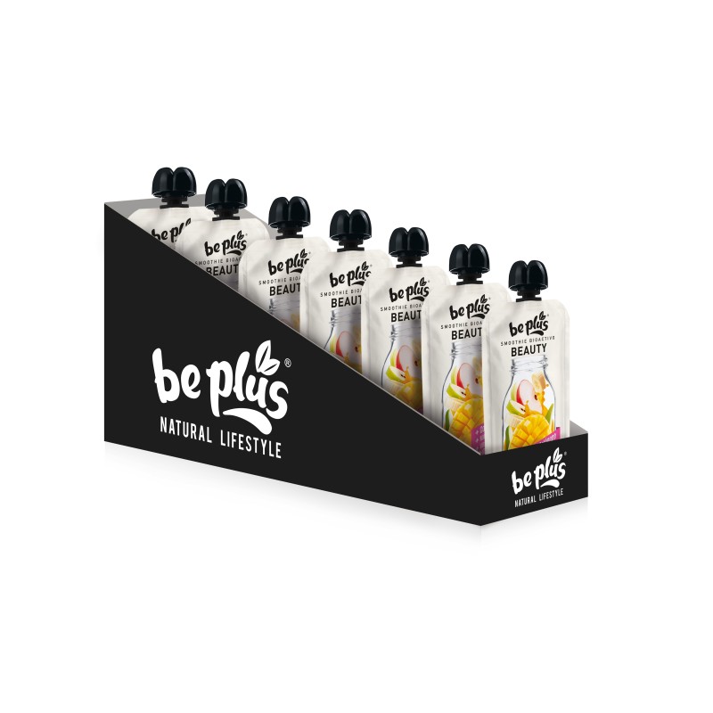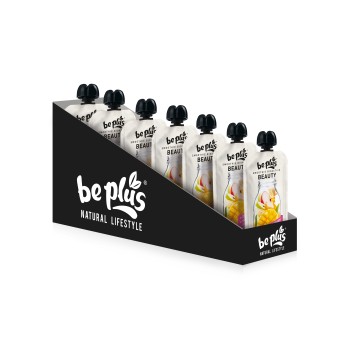 Ingredientes: Puré de frutas [manzana (26%) , pera (26%) , mango (16%) , plátano (16%) ] en proporción variable, puré de calabaza (10%), colágeno hidrolizado (4.5%), zumo de naranja concentrado , vitaminas (C, B3, B2, A y H), zinc, iodo, selenio, aroma natural y cúrcuma.